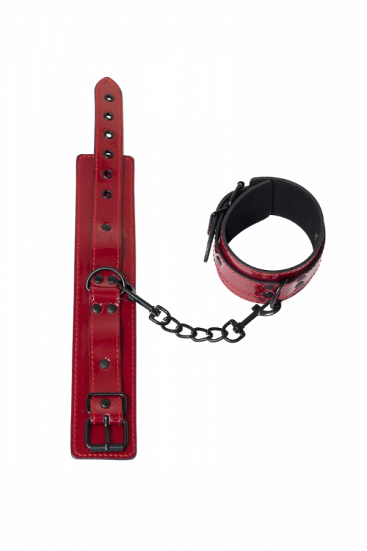 Потрясающие оковы на ноги "Party Hard" из лакированной экокожи в страстном красном цвете - яркий БДСМ аксессуар для самой провокационной сессии!
