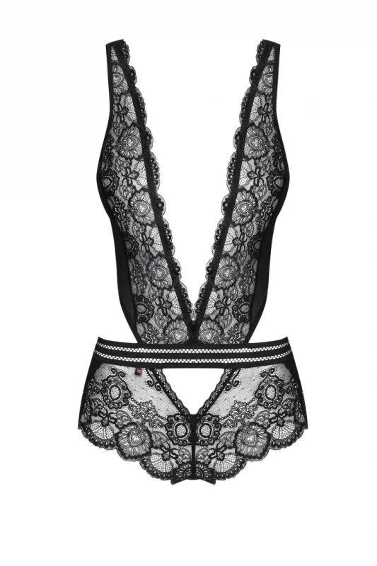 Экстравагантное боди "Obsessive" кружевное, черное, L/XL