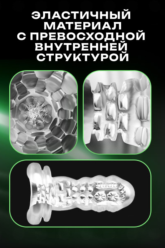 Внутренний рукав выполнен из инновационного материала 3D TPE (термопластичный эластомер). Рельеф рукава с россыпью нежных шипиков не оставит без внимания ни один миллиметр полового члена! По тактильным ощущениям мастурбатор невероятно нежный, бархатистый, эластичный